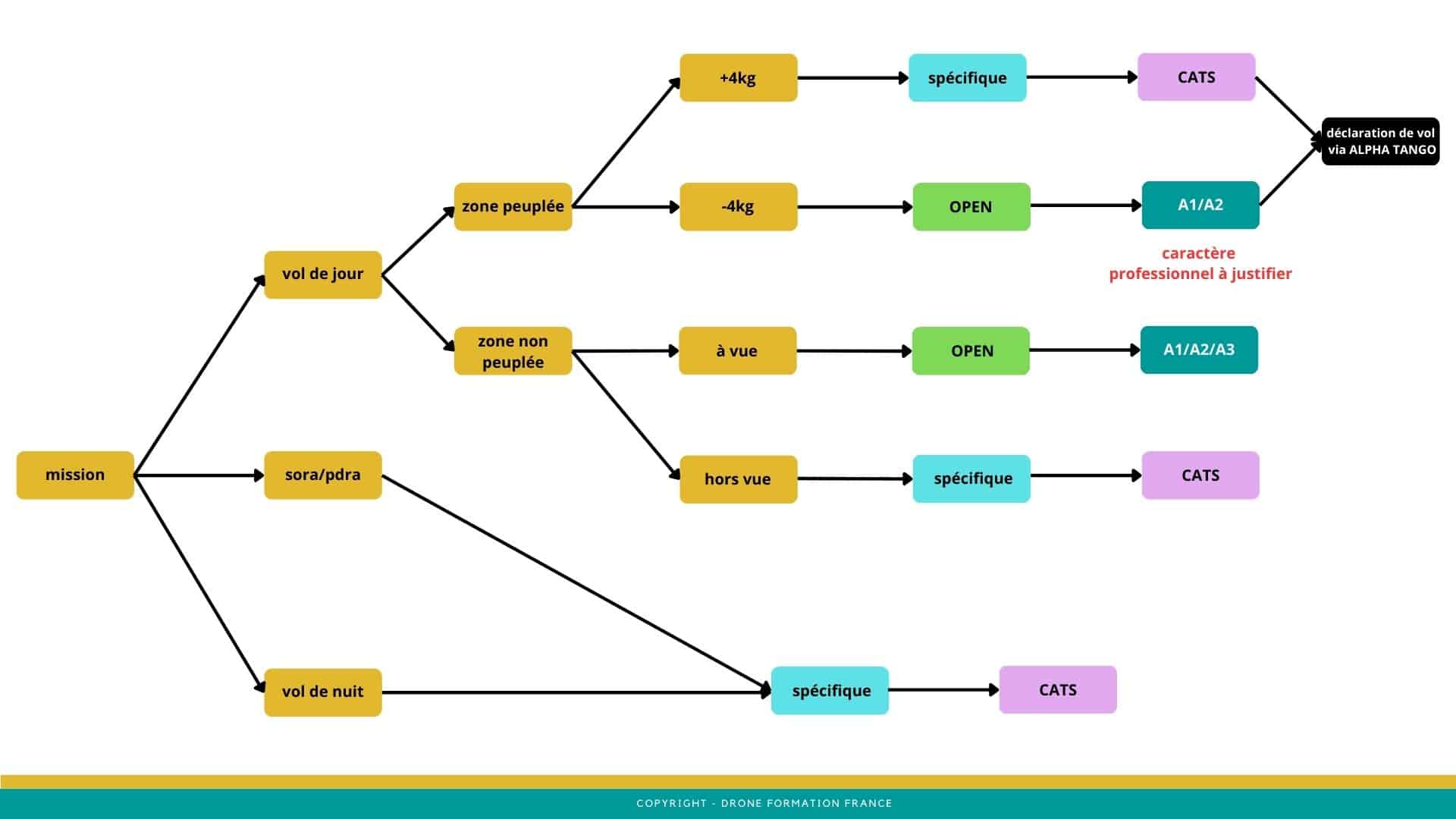 A noter que le A2 limite aux drones de 4kg, au dessus de ce poids il faudra passer en SPECIFIQUE.